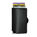 Las billeteras NIEBLA poseen sistema de protección RFID. Su característica principal es que poseen un compartimiento metálico fabricado en Aluminio, muy resistente y duradero. Esta carcasa metálica, diseñada para guardar principalmente tarjetas bancarias, previene el robo de datos personales a través de comunicaciones inhalámbricas. Su tamaño las hace billeteras muy cómodas de llevar y guardar en cualquier bolsillo.