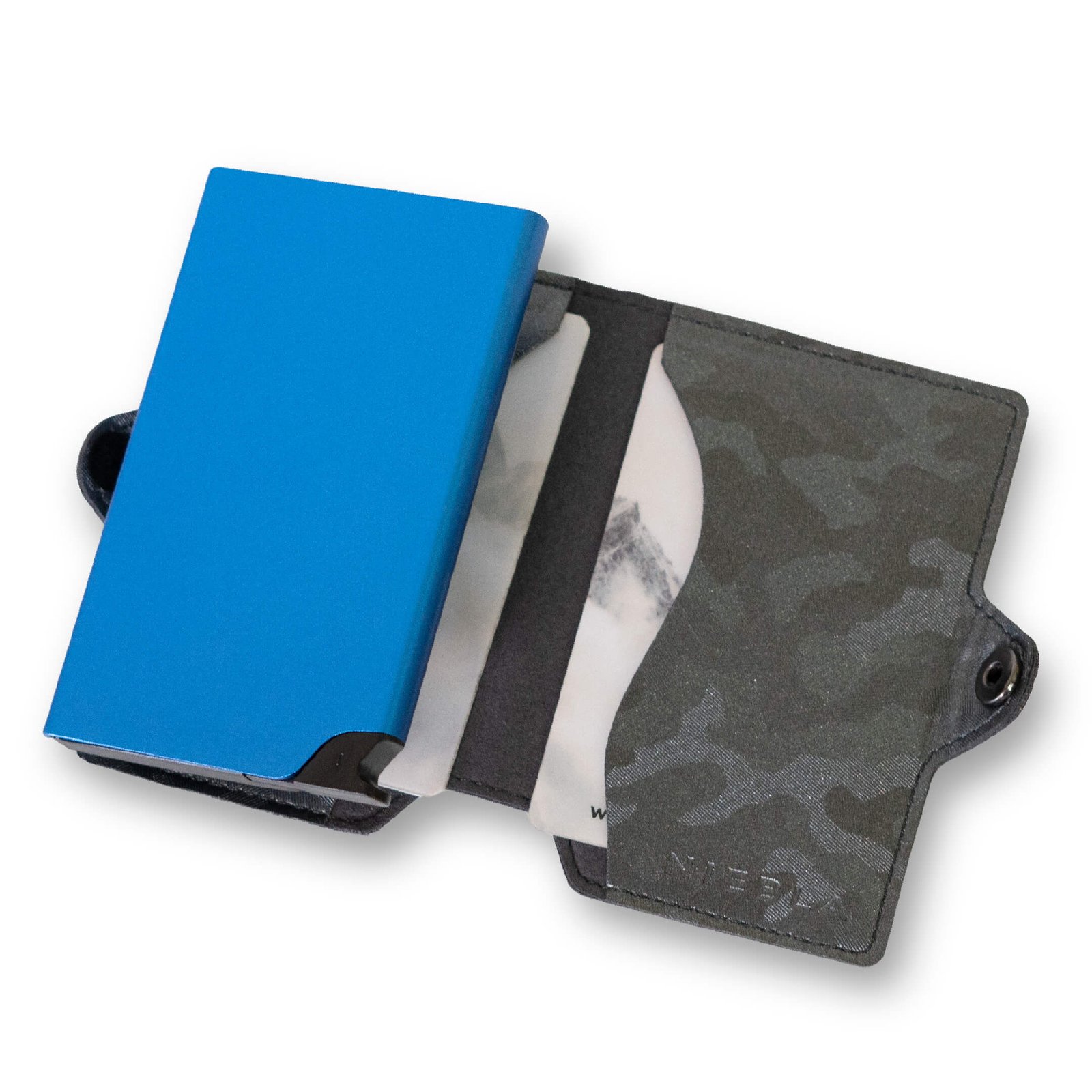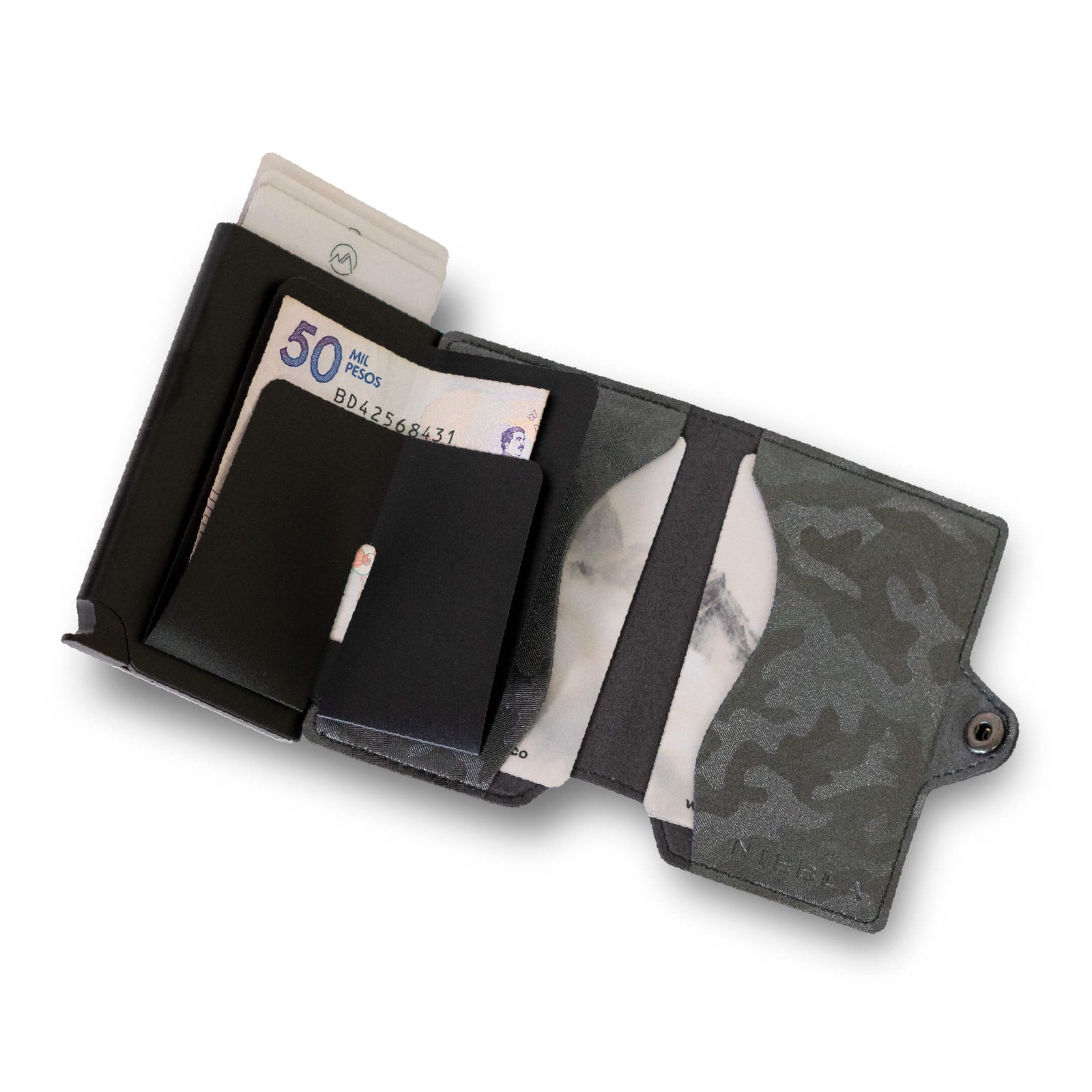 Las billeteras NIEBLA poseen sistema de protección RFID. Su característica principal es que poseen un compartimiento metálico fabricado en Aluminio, muy resistente y duradero. Esta carcasa metálica, diseñada para guardar principalmente tarjetas bancarias, previene el robo de datos personales a través de comunicaciones inhalámbricas. Su tamaño las hace billeteras muy cómodas de llevar y guardar en cualquier bolsillo.