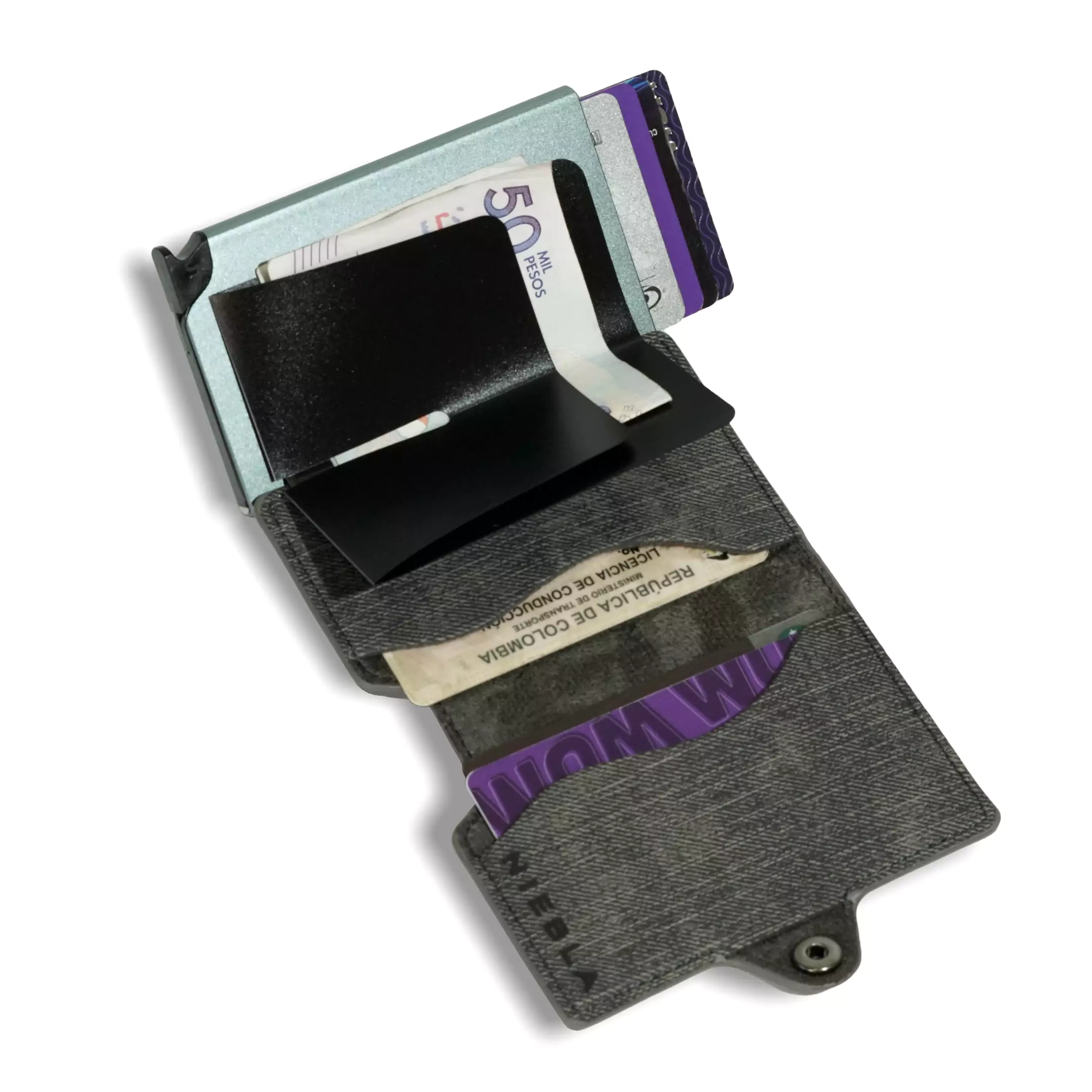 Las billeteras NIEBLA poseen sistema de protección RFID. Su característica principal es que poseen un compartimiento metálico fabricado en Aluminio, muy resistente y duradero. Esta carcasa metálica, diseñada para guardar principalmente tarjetas bancarias, previene el robo de datos personales a través de comunicaciones inhalámbricas. Su tamaño las hace billeteras muy cómodas de llevar y guardar en cualquier bolsillo.