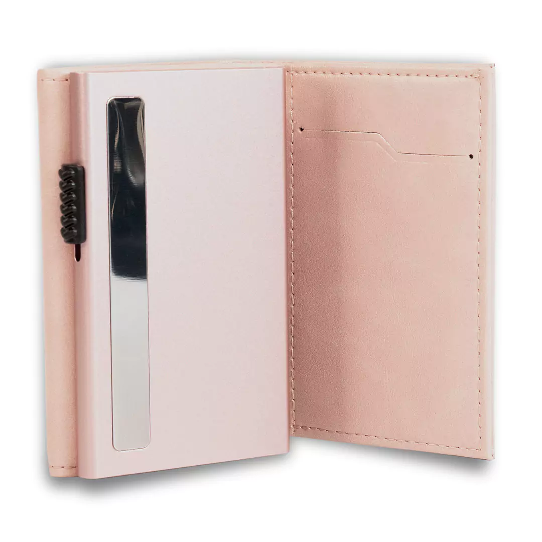 Nuestras billeteras son ideales para aquellos que buscan un diseño elegante y minimalista con capacidad máxima de 12 tarjetas bancarias, 6 documentos, y billetes. Además, cuentan con la tecnología RFID que protege tus tarjetas bancarias de robos por medio de compras sin contacto no autorizadas. Estas billeteras están hechas con materiales de alta calidad, incluyendo cuero vegano y una parte metálica de titanio y aluminio para mayor durabilidad y resistencia.
