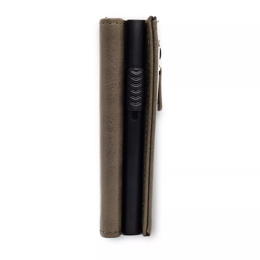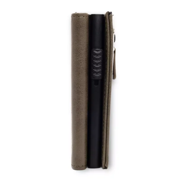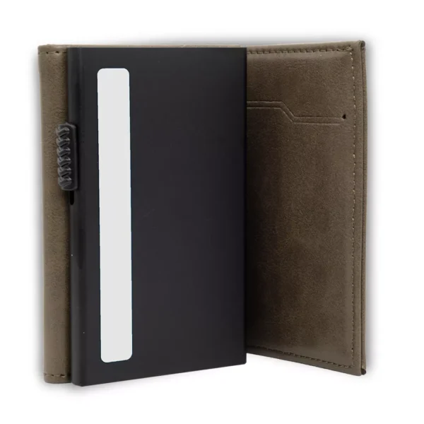 Nuestras billeteras son ideales para aquellos que buscan un diseño elegante y minimalista con capacidad máxima de 12 tarjetas bancarias, 6 documentos, y billetes. Además, cuentan con la tecnología RFID que protege tus tarjetas bancarias de robos por medio de compras sin contacto no autorizadas. Estas billeteras están hechas con materiales de alta calidad, incluyendo cuero vegano y una parte metálica de titanio y aluminio para mayor durabilidad y resistencia.