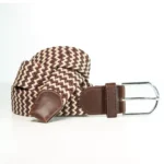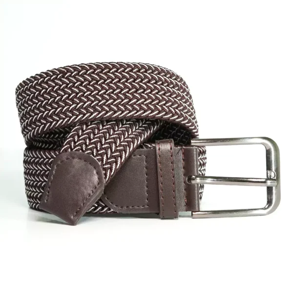 Un cinturon elegante y versátil confeccionada con cuero PU de alta calidad, un elástico resistente de poliéster y una hebilla robusta de metal, con un ancho de 3,5 cm para un ajuste cómodo y seguro.